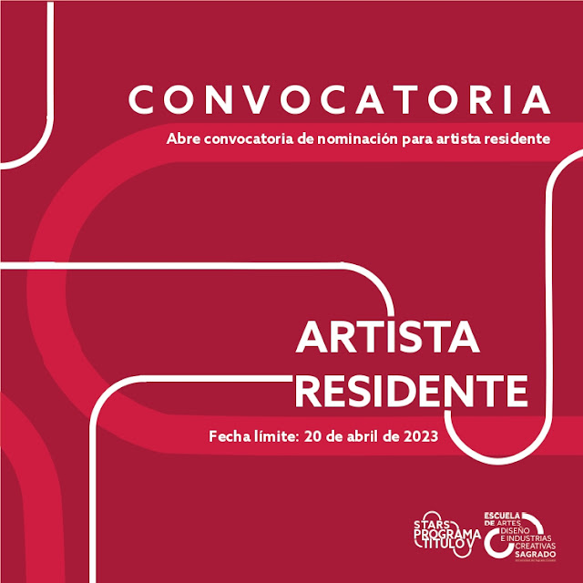 CONVOCATORIA | Abre convocatoria de nominación para la residencia artística de la Escuela de Artes, Diseño e Industrias Creativas. Si conoces a artistas o eres artista de las disciplinas de teatro, música, danza, escritura creativa, artes visuales, diseño (gráfico, moda, industrial), fotografía, animación e industrias creativas, es tu oportunidad de nominar o solicitar.